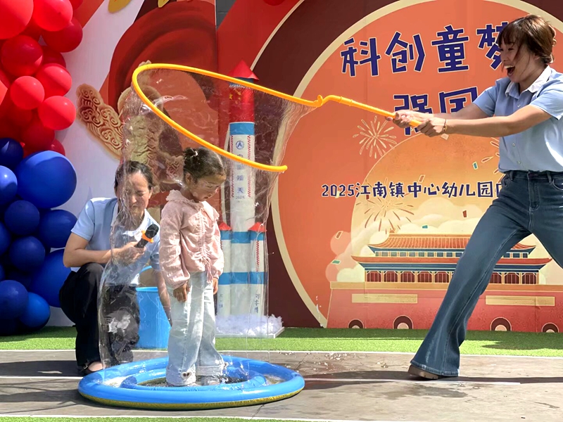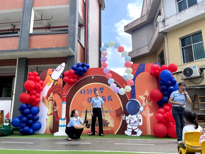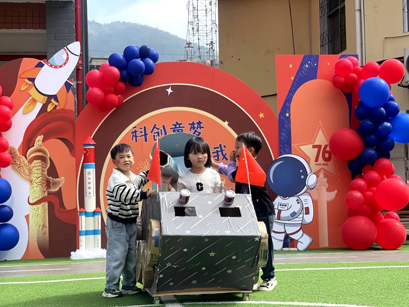 本网讯 9月28日上午,江南镇中心幼儿园操场上彩旗飘扬,科技与国庆元素交相辉映。一场以“科创童梦,强国有我”为主题的科技节活动在此拉开帷幕,全体师幼及家长代表共同参与了这场充满奇趣的科技盛宴。 活动伊始,该园园长廖迎亚发表热情洋溢的开幕词,鼓励孩子们勇于探索、大胆创新。随后,文艺表演精彩上演:大一班的律动表演活力十足,展现了幼儿的蓬勃朝气;中小班的“机器人秀”萌态可掬,孩子们身着自制机器人服饰,跟着音乐舞动,赢得全场阵阵掌声。 最受期待的互动环节中,“手掌火焰”“烟雾空气炮”“大象牙膏”等科学小实验轮番登场。各班教师化身“科普达人”,一边演示实验原理,一边指导孩子们亲手操作。孩子们瞪大好奇的眼睛,在动手实践中感受科技的神奇魅力。展示区里,亲子科技小制作、科幻画、机器人模型等作品琳琅满目,充分展现了孩子们的想象力与创造力。 此次科技节不仅为孩子们搭建了探索科学的平台,更在他们心中播下了科技创新的种子,让“强国有我”的信念悄然扎根。(通讯员 王海梅) 初审初校:王海梅 复审复校:谢庆 终审终校:廖迎亚