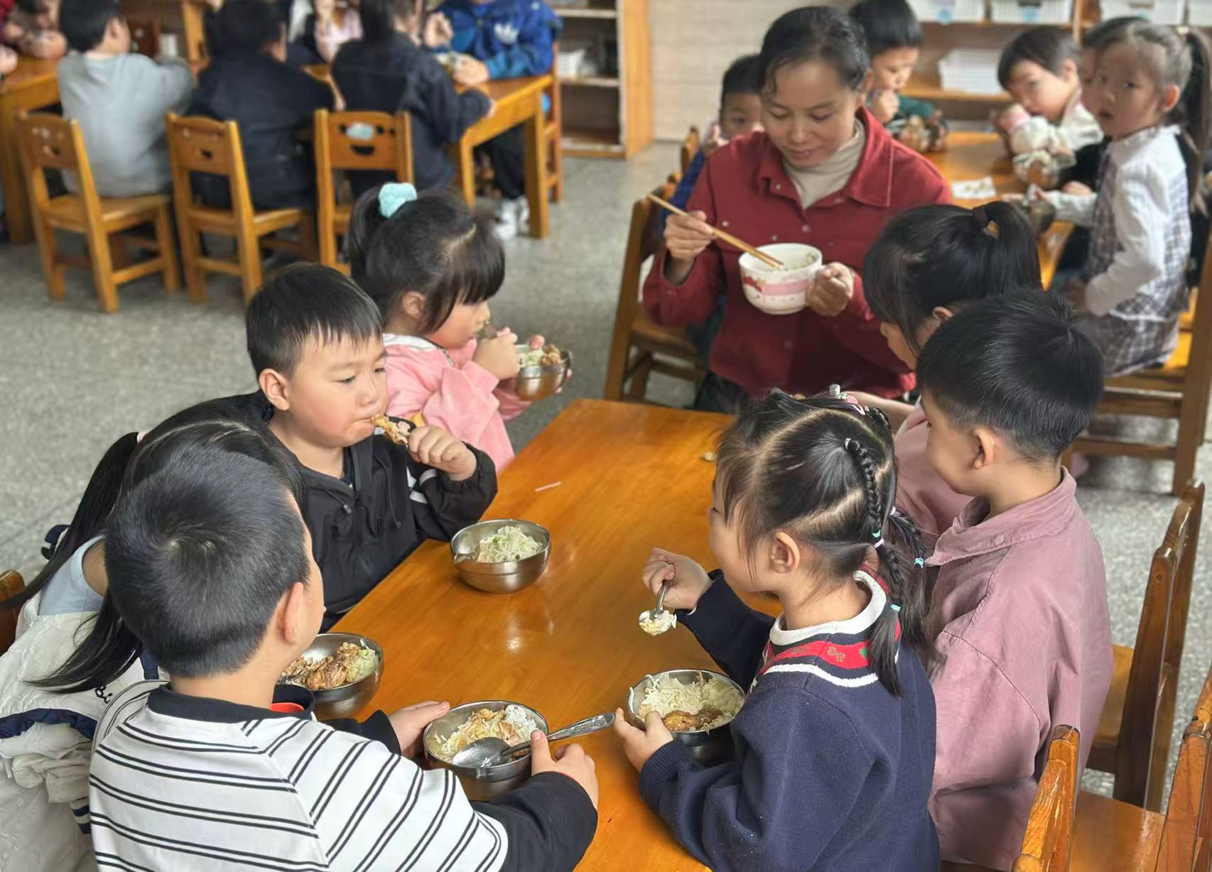 本网讯 9月26日,长塘镇中心幼儿园大二班组织开展了“家长陪餐日”活动,邀请家长代表和行政走进班级,与孩子们共同体验美味午餐。 午餐环节,家长代表在工作人员的引导下,实地查看食材采购、厨房卫生、餐食制作流程,了解幼儿餐食安全保障措施。清晰的管理制度、整洁的操作环境和严格的安全把控,获得了家长的一致认可。家长和行政代表走进班级,与孩子们一同坐在餐桌前,品尝了幼儿园精心准备的营养午餐。白菜粉丝炒肉、红烧鸡腿、海带排骨汤,科学的营养搭配和清香可口的饭菜赢得了孩子与家长的喜爱。用餐过程中,陪餐行政伍主任细致地为每个孩子添菜加饭,家长们仔细观察孩子们的就餐习惯,不时与老师交流菜品的口味和分量,并认真填写了《家长陪餐反馈表》,提出了宝贵的意见和建议。 该园园长表示,家长陪餐制度是幼儿园食品安全管理的重要环节。今后,该园将持续开展陪餐活动,主动接受家长监督,不断优化膳食方案,为孩子们的健康成长保驾护航。 初审初校:伍叶群 复审复校:胡辉 终审终校:金姣