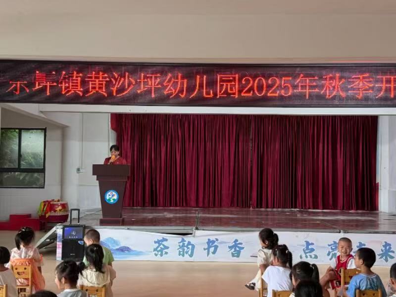 本网讯 9月10日,东坪镇黄沙坪幼儿园以“童心启新程,礼韵润成长”为主题举行新学期开学典礼。 典礼在欢快的音乐声中拉开帷幕,李苾芸老师带领孩子们表演开场律动操。刘颖校长发表题为“以爱育苗,共筑童梦”的致辞。她强调幼儿园将持续优化教育环境。紧接着学生代表吉思涵以童言童趣分享暑假见闻;家长代表谌语彤妈妈呼吁家长“信任园所,携手共育”;教师代表刘韵琴承诺践行“尊重个性、激发潜能”的教育理念。 园长蒋霞带领全体教师右手举拳,铿锵宣誓:“以德立身、以爱育人,为幼儿终身发展奠基!” 初审初校:刘韵琴 复审复校:蒋霞 终审终校:刘颖