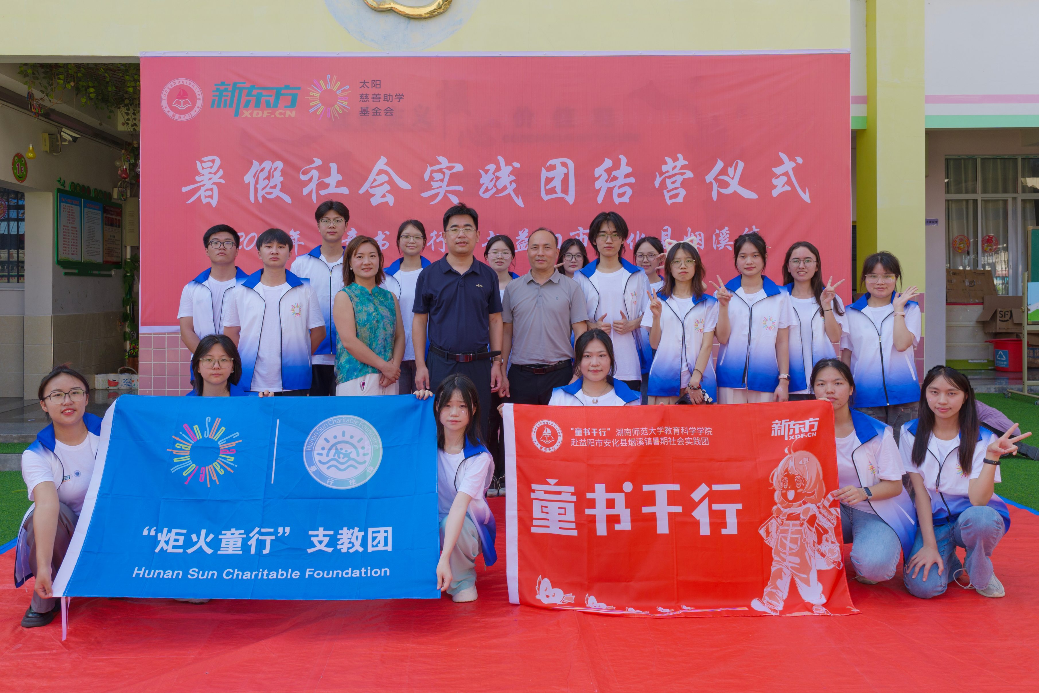本网讯 7月15日,湖南师范大学教育科学学院“童书千行”暑期社会实践团在烟溪镇中心幼儿园操场举行结营仪式,标志着为期数周的实践活动圆满结束。烟溪镇党委副书记伍朝友全程参加。 仪式由实践团成员高佳毅主持。实践队指导教师、烟溪镇中心幼儿园及烟溪镇小的教师代表先后发言,回顾实践历程,肯定活动成效,并对未来持续合作表达期许。现场同期举行了“新东方心理健康帮扶”项目授牌仪式和“童书千行”图书捐赠仪式,体现了对当地儿童教育与心理健康的关注与支持。仪式核心环节为文艺汇演:烟溪镇孩子们演绎的绘本剧《小青花》以童趣方式展现传统文化;紧随其后的五步拳表演,表现出其动作刚劲有力;另一出绘本剧《大闹天宫》则重现经典故事。实践团全体成员压轴献唱歌曲《奔跑》,以歌声传递出青春力量。 本次“童书千行”暑期社会实践活动以儿童阅读推广与乡村教育关怀为核心。实践团通过系列课程、阅读活动及结营仪式的成功举办,不仅为当地儿童提供了丰富的学习体验和展示平台,也深化了大学生服务乡村教育的责任感。此次活动的结束,是校地携手助力乡村儿童全面发展、赋能乡村振兴事业的又一个坚实足迹。 初审初校:刘如君 复审复校:张雄 终审终校:刘瑞娟