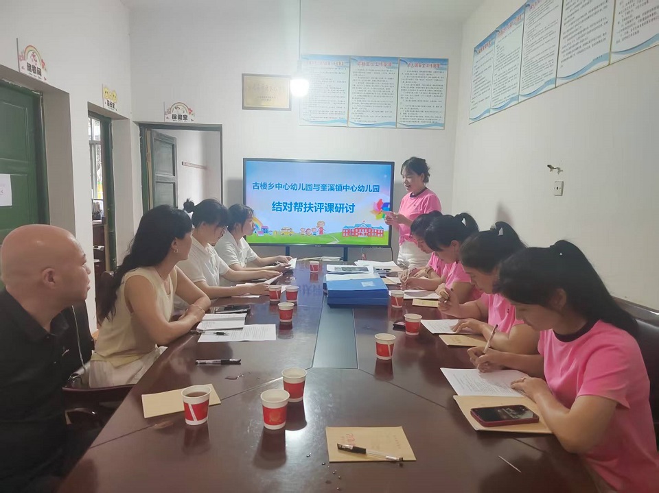 活动中,奎溪镇中心幼儿园教师带来凸显幼儿发展需求与教学创新的公开课,古楼乡幼儿园教师则展示融合园本特色的课堂实践。评课环节,双方教师从目标达成、方法创新等维度分组研讨,就“如何优化师幼互动”“园本课程开发路径”等议题交换见解。奎溪镇中心幼儿园同步分享幼小衔接工作经验,两园园长共同梳理活动成效,明确后续资源共享、跟岗学习等帮扶计划。