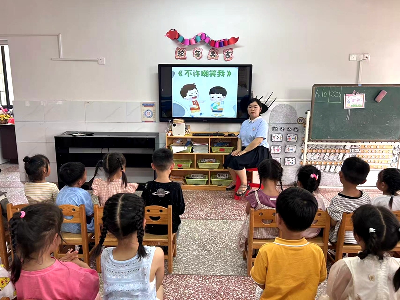 本网讯 近日,江南镇中心幼儿园中班组开展《不许嘲笑我》心理健康主题学习活动,为幼儿的心灵成长筑牢温暖防线。 活动中,教师以生动的绘本故事《不许嘲笑我》为切入点,用童趣的语言和精美的画面,引导孩子们认识嘲笑行为对他人造成的伤害。通过情景模拟、互动问答等形式,让幼儿设身处地感受被嘲笑者的难过心情,学习用友善的语言和行动对待同伴。孩子们积极参与讨论,纷纷表示“要做善良的小天使”。 该园负责人表示,此次活动有效帮助中班幼儿建立尊重他人、友善待人的意识,引导他们学会换位思考,为培养良好的社交能力和健康心理奠定基础。 初审初校:王海梅 复审复校:谢 庆 终审终校:廖迎亚