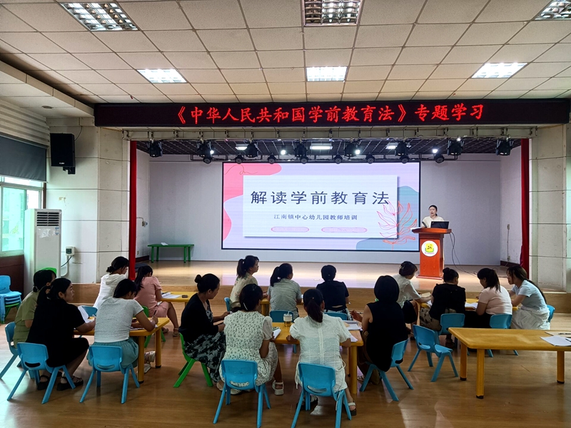 本网讯 6月5日,江南镇中心幼儿园组织全体教师开展《中华人民共和国学前教育法》学习活动。 活动中,该园园长廖迎亚带领教师们深入学习《中华人民共和国学前教育法》,聚焦“学前儿童”“保育教育”“幼儿园”“教职工”等核心条款,通过理论解读、案例分析等形式,帮助教师深入理解法律内涵,明确自身在学前教育中的责任与义务,引导教师将法治思维转化为日常保教工作的行动准则。 教师们认真聆听、积极思考,围绕法律条款展开热烈讨论,结合日常教学实践分享学习心得。大家纷纷表示,此次学习受益匪浅,今后将严格按照法律要求规范教育教学行为,以幼儿为本,尊重幼儿发展规律,为幼儿提供更加优质、安全的学前教育服务,用实际行动贯彻落实《中华人民共和国学前教育法》,推动幼儿园学前教育事业高质量发展。 初审初校:王海梅 复审复校:谢 庆 终审终校:廖迎亚
