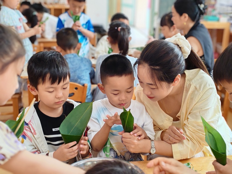 本网讯 5月30日,东坪镇东风幼稚园举办“‘粽’享欢乐,喜迎端午”主题活动,通过亲子互动、趣味实践等形式,让幼儿、家长、教师及志愿者共同感受端午节的独特魅力。 活动现场,教师们通过生动的课件与互动问答,向孩子们讲述了端午节的起源与习俗。从屈原的爱国故事到挂艾草、赛龙舟的民俗传统,孩子们在聆听中领悟传统文化的深厚底蕴。 在包粽子环节,家长志愿者现场示范粽叶折叠、填米扎线的技巧,萌娃们化身“小小厨神”,在老师们、家长志愿者们的指导下亲身体验用粽叶包粽子的快乐。一个个可爱的粽子在孩子们手中成形,虽然形状各异,但孩子们捧着自己的“劳动成果”时满脸自豪道:“我要带回家给妈妈尝尝!”大班幼儿果果朵朵捧着自己包的粽子兴奋地说:“我要带回家给奶奶尝尝!”家长颜女士感慨:“和孩子一起动手,不仅体验了传统手艺,更感受到亲子协作的温暖。” 初审初校:王立霞 复审复校:刘海英 终审终校:刘娴
