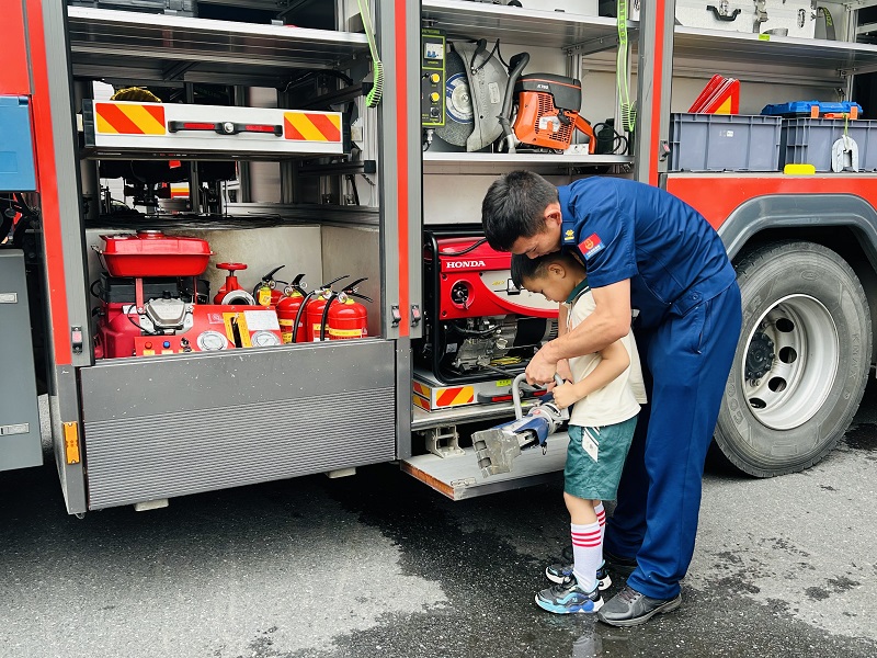 本网讯 5月16日,东坪镇泥埠桥幼儿园大班组90余名萌娃在老师的带领下走进安化县消防救援站,开启了一场沉浸式消防安全体验之旅。孩子们通过学习使用灭火器、试穿灭火战斗服、登上消防车等互动环节,在欢声笑语中学习消防知识,并用一篮红苹果传递对“逆行英雄”的暖心祝福。 消防车初体验:萌娃直呼“太酷了” 上午9时,消防员的欢迎声让孩子们瞬间雀跃。在消防车辆展示区,两辆红色消防车整齐排列,液压破拆工具、高压水枪等设备首次近距离展现在孩子们眼前。“叔叔,这个银色的大钳子是做什么的呀?”面对6岁男孩泽泽的提问,消防员耐心蹲下身,用童趣语言解释:“这是救援“神器”,可以剪开变形车门救出被困的人哦!”最让孩子们兴奋的是登车体验环节,在消防员保护下,孩子们轮流爬上消防车驾驶室,小手摸着方向盘、探着脑袋观察仪表盘,仿佛化身“小小消防员”。 穿上“铠甲”:感受消防英雄的重量 试穿灭火防护服环节掀起了活动高潮。当重达20多斤的灭火服“裹”住6岁女孩小雨时,她踉跄着走了两步便大喊:“像背了三只小熊书包!”消防员随即讲述:“我们出警时要背着空气呼吸器,加上水枪装备,总重超过60斤。”孩子们瞪大眼睛,一名男孩摸着防火靴喃喃道:“原来消防员叔叔这么辛苦……” 童心暖蓝焰:苹果传递平安祈愿 活动尾声,孩子们手捧亲手挑选的苹果,排成整齐的队伍走向消防员:“叔叔们吃苹果,希望你们每次出警都能平安回来!”稚嫩的祝福让消防员们眼眶湿润,消防员表示:“孩子们的心意让我们很感动,也希望通过活动,让消防安全的种子在他们心中生根发芽。” 该园园长王满君表示:“孩子们不仅学会了逃生常识,更懂得了敬畏生命、感恩奉献。”临别时,消防员与萌娃们合影留念,照片里,消防车、红苹果与笑脸构成了一幅最温暖的平安画卷。 初审初校:谌瑶 复审复校:吉龙慧 终审终校:王满君