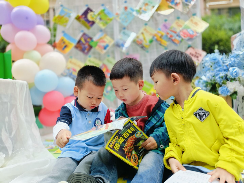 最令人期待的是“书屋共享会”环节,全体师幼移步到操场,小朋友们纷纷拿出自己心爱的书籍,与小伙伴们分享、交换。在轻松愉快的书香氛围中,孩子们三五成群,或席地而坐,或围坐在一起,专注地翻阅着书籍,沉浸在知识的海洋中。不仅收获了新的知识,更学会了分享与交流。