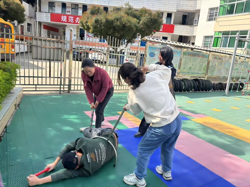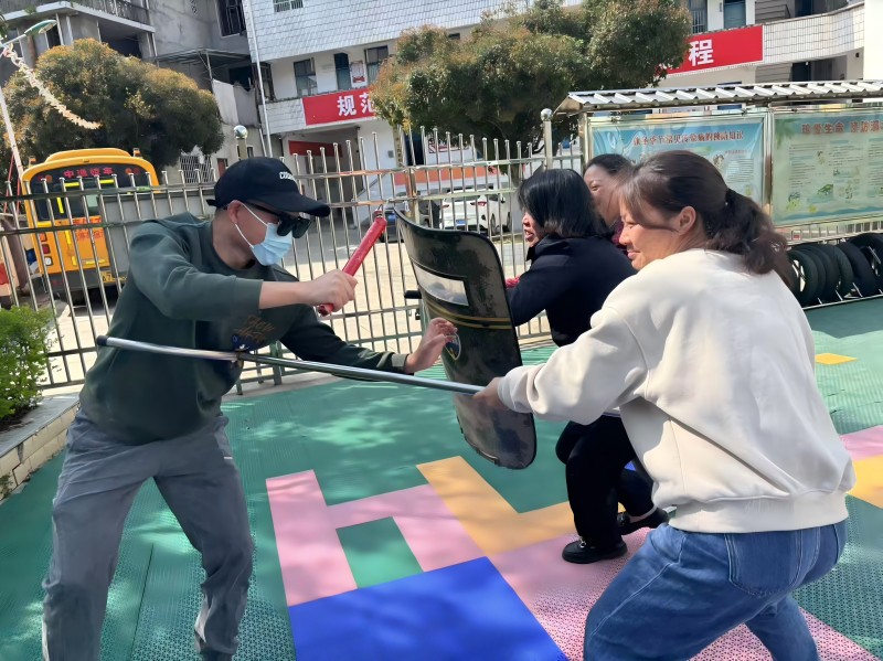 本网讯 4月2日,乐安镇中心幼儿园内一片欢声笑语,孩子们正在户外尽情地做着游戏。突然,一阵尖锐刺耳的警报声划破了校园的宁静。园长听闻警报声,瞬间从办公室朝着操场飞奔而去,边跑边大声呼喊:“立刻启动防暴应急预案!” 原来,一名“男子”手持凶器,强行闯入幼儿园。幼儿园专职保安反应迅速,在拉响警报器的同时,迅速拿起盾牌与钢叉,毫不犹豫地朝着“歹徒”追去,边追边试图用钢叉控制住对方,一场激烈的“争斗”就此展开。 园内,园长一边飞速关闭园内栅栏门,一边与安全专干担当起后方的护卫工作。与此同时,老师们迅速组织孩子们撤回教学楼。厨房的两位师傅顺手拿起身边能当作“器械”的物品,守在教学楼大门处,关闭大门严防“歹徒”闯入。教师与保育员们也第一时间赶到各个班级,紧闭门窗,并用桌子、柜子等重物死死顶住门。 就在这时,“歹徒”竟然翻过了栅栏,还挟持了一位因保护孩子撤离而落在最后的老师,以此作为威胁。保安、园长、安全专干以及两位男教师迅速将“歹徒”团团围住,与这个“暴恐分子”展开劝说和交涉。在僵持过程中,一名保安瞅准“歹徒”分心的瞬间,从背后猛地死死抱住他,其他人员见状一拥而上,成功夺下“歹徒”手中的凶器,最终顺利将其制服,并移交给了随后赶来的“警察”。紧接着,校园广播里传来园长的声音:“老师们、同学们,刚才进行的是我们幼儿园的反恐防暴安全演练。”随后,园长还就如何在校园内开展反恐防暴工作进行了简要的辅导宣讲。 初审初校:吴丹红 复审复校:周艳平 终审终校:蒋吉贵