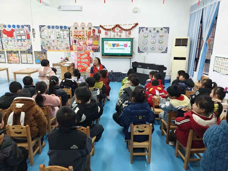 本网讯 2月17日洞市幼儿园以班级为单位开展了安全教育第一课。