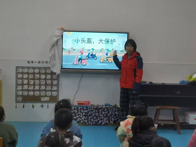 此外,教师在班级家长群向家长和幼儿广泛宣传“小头盔 ,大守护”的安全文明出行倡议,提醒家长遵守交通规则,倡议骑电动车和摩托车的家长接送幼儿坚持佩戴头盔。