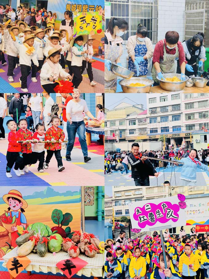 本网讯 11月14日,梅城镇紫云幼儿园举办“秋收冬藏·五谷丰登”亲子农耕农趣亲子运动会。 上午九点,伴随着“军民大生产”的音乐声响起,头戴草帽、手拿镰刀、红薯、胡萝卜、甘蔗、玉米、橙子等道具的小小运动员们踏着矫健的步伐,在国旗队和园旗队的带领下,有序入场,拉开了本次运动会的帷幕,独特的造型和别致的口号赢得了家长们的阵阵掌声。 据了解,本次运动会是本园农耕文化特色课程的延续,农耕道具大部分都是家长和幼儿种植的,运动项目也和普通的运动会不一样,分犁地高手、赶“猪”入笼、奔跑吧玉米、年年大丰收、团结跑跑跑、一举“橙”名等等,最特别的是南瓜粑粑生产队,他们是各班推选出来的美食制作高手,他们用南瓜为原材料,制作了各种南瓜美食供大家分享。 “感谢幼儿园提供了这次亲子运动会的机会,让我和孩子享受了快乐的亲子时光!”该园家长熊女士开心地说。 初审初校:易朝辉 复审复校:付喜姣 终审终校:谭海英