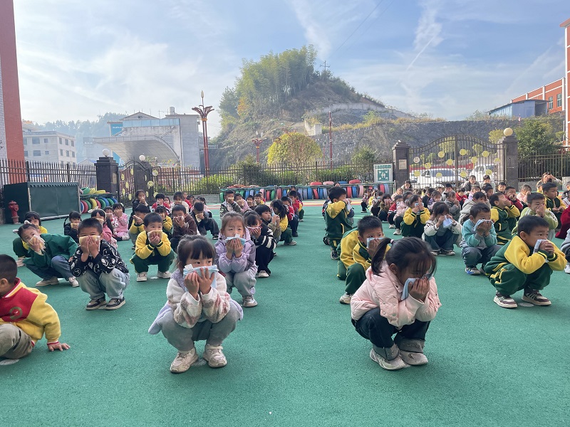 最后,进行了全园消防安全演练活动。警报声响起,孩子们迅速用湿毛巾捂住口鼻,在班级老师的带领下迅速沿安全通道疏散到操场。班级老师迅速清点班级人数并上报,整个演练分工明确,组织有序。