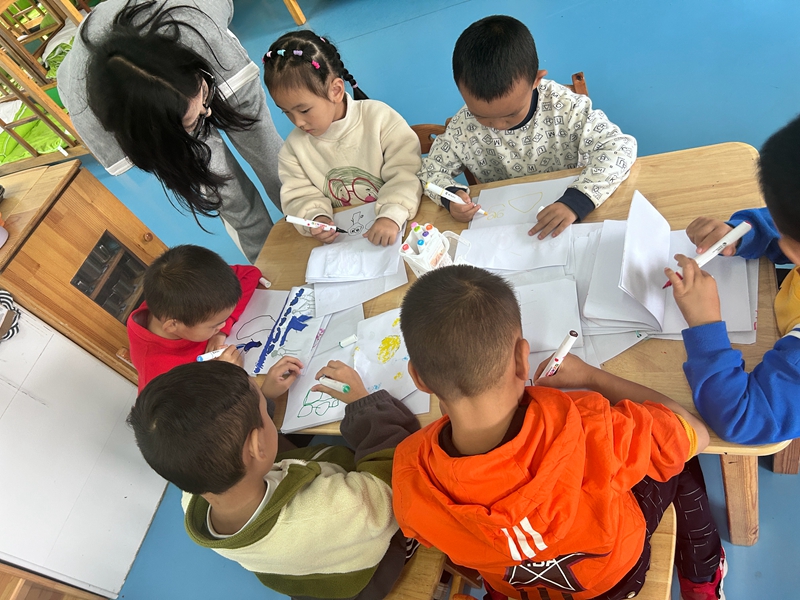 游戏结束后,老师们走进班级里进行了幼儿游戏故事的倾听,了解孩子在游戏后的想法和感受,参与了孩子游戏后的表达表征。老师们就本班幼儿在游戏区的活动、自己观摩到的场景、与幼儿互动情况、感悟进行了分享,分享过程中,教师们认真聆听,细心做好笔记,老师们重视幼儿通过绘画、讲述等方式对自己经历过的游戏、阅读图画书、观察等活动进行表达表述,教师能认真倾听每个孩子的游戏故事并真实记录幼儿的想法和体验”。