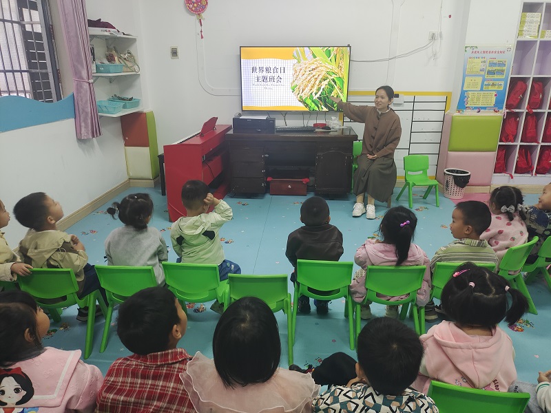 活动中,各班老师通过播放视频、PPT、讲故事、学习古诗等形式,引导孩子们了解“世界粮食日”的由来,知道粮食对人类的重要性,明白粮食的生产过程,感受农民种粮的辛苦,懂得“一粥一饭,来之不易"的道理,使孩子懂得珍惜粮食,从我做起。