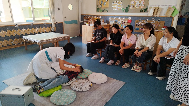 本网讯 9月25日,东坪镇小精灵幼儿园进行“高热惊厥”安全演练。 演练模拟正在进行集体活动时,一名幼儿突发“高热惊厥”情景,班级教师发现情况后迅速向幼儿园行政报告,保健医生和安全园长迅速来到现场。保健老师了解乐乐病情后,给乐乐清理口腔、侧头、测体温、咬压舌板、降温等处理,后勤园长通知120,安排乐乐就医,主班老师通知家长,保健老师和班级老师送乐乐就医。 园长戴欢妮表示,“高热惊厥”是幼儿常见的突发情况之一,本次演练历时8分钟,“以演代培",顺利高效完成,全体教师掌握基本的救护知识、技能,希望全体教师都能从这次演练活动汲取经验,沉着应对突发事件,共同维护幼儿安全,保证幼儿身心健康和谐发展。 初审初校:虎 男 复审复校:林志群 终审终校:戴欢妮