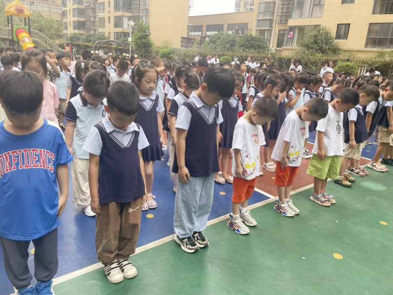 在庄严肃穆的仪式上,全体师生为革命先烈默哀,向烈士们表达崇高的敬意和深切的哀思,更蕴含着感激之情。总园长刘俊进行了国旗下的讲话,带领孩子们回顾历史,纪念“九一八”,并领读《少年中国说》,现场小朋友们的声音铿锵有力,用充沛饱满的感情展现了中国少年的风采。