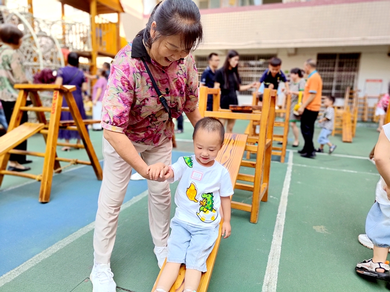梅城镇中心幼儿园:开心入园 快乐体验 本网讯 8月30日上午,梅城镇中心幼儿园开展了新生入园体验活动,帮助即将入园的新生小朋友更快的熟悉幼儿园环境,缓解入园焦虑。 本次活动以户外自主游戏为主,有沙水区、骑行区、滚筒区、攀爬区、搭建区等。早晨8:30分,家长与幼儿有序入园、签到、贴姓名牌。8:40分活动准时开始,首先家长与幼儿在该园内坪集合,与小班组教师一起进行有趣的律动游戏,随后主持人介绍活动流程与温馨提示。在欢快的音乐中萌娃们找到自己心仪的区域,在老师们的引导和鼓励下,开心的体验各项活动。有在沙水区探秘寻宝的;有在搭建区里搭建形状各异的“小房子”的;有与同伴骑车兜风的……全心投入,陌生环境带来的紧张感一扫而光。 “老师,你跟我一起去玩吧!”一双稚嫩的小手主动伸向老师发出邀请。“妈妈,幼儿园太好玩了,我明天还要来。”一个小朋友开心的和妈妈说道。 初审初校:谢莹蓉 复审复校:曹仲英 终审终校:付 蓉