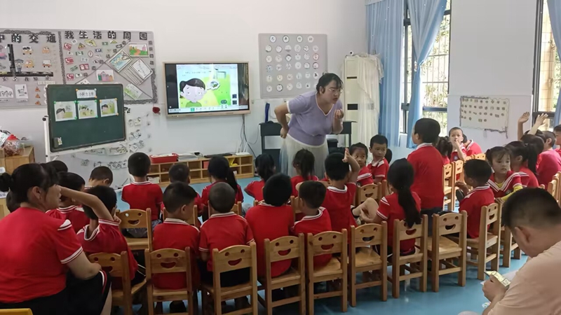 活动中,洞市幼儿园李珊老师在大一班组织了一个语言教学活动《小阿力上学》。李珊生动有趣的利用多媒体课件、丰富的肢体语言,充分调动了孩子们的积极性,用游戏互动的方式为孩子们创造了一个想说、敢说、喜欢说的语言环境。孩子们成功的为小阿力解决了三个担忧并为他找到了好的解决办法,同时也为孩子们自己即将上小学做了一次很好的心理疏导和建设。