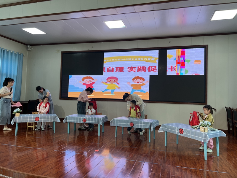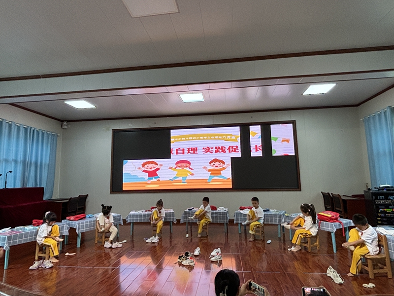 本网讯 6月7日,梅城镇中心幼儿园自理能力复赛在多媒体室进行,16个班级96位小选手参与复赛,该园园长付蓉及保教处人员担任评委。 本次比赛分年级组进行,根据孩子的年龄特点和发展水平制定比赛项目。大班组是穿袜子、穿鞋、系鞋带;中班组是扎头发(女生)、扣扣子(男生);小班组是穿鞋、叠衣服、卷袜子。赛场上,小班的孩子们毫不怯场,认真又努力地完成着规定的项目。中班的孩子们有条不紊、专心致志地按照步骤进行操作。大班哥哥姐姐们的比赛就变得游刃有余了,一个个熟练的穿着袜子、鞋子、整理着书包,每个环节都做得十分出色 !现场小朋友的加油声,老师的鼓励声,汇成了欢乐的“比赛进行曲”。 经过紧张激烈的角逐,每个参赛选手都获得了相应的奖项,孩子们脸上都绽放出了自豪的笑容。 初审初校:刘红芳 复审复校:曹仲英 终审终校:付蓉