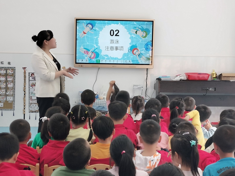 本网讯 5月28日,洞市幼儿园以班级为单位开展了“谨防溺水,安全‘童’行”为主题的防溺水安全教育活动。 各班老师根据幼儿年龄特点,利用图片、视频、故事等方式,主要从“发生溺水的原因、触目惊心的溺水事件、防溺水安全知识、意外溺水怎么办”等方面对幼儿进行警示教育,强调要牢记“六不准四知道”,掌握最基本的应急自救、求助、报警方法。 随后,老师以情景模拟的形式,再现了溺水时正确施救的场景:在发现同伴落水后,小朋友们不要急于伸手施救,以免被拖入水中,要第一时间寻求老师、家长的帮助,合理利用身边的绳索、竹竿等工具抛向溺水者,再将其拖至岸边;此外,老师向小朋友们演示如何清理溺水者口腔鼻腔异物,以及如何正确进行控水、心肺复苏等急救知识,孩子们在紧张有序的演练中,进一步掌握了防溺水的方法和技巧,提升了自救自护能力。 据了解,该园还利用微信家长群向家长推送防溺水温馨提示,利用幼儿园的电子显示屏不间断的发送防溺水安全宣传标语,每天通过广播播放防溺水儿歌,该园老师们利用周末和回家的时段进行防溺水随手拍活动,结合一切力量杜绝防溺水零事故,携手筑牢幼儿生命安全防线。