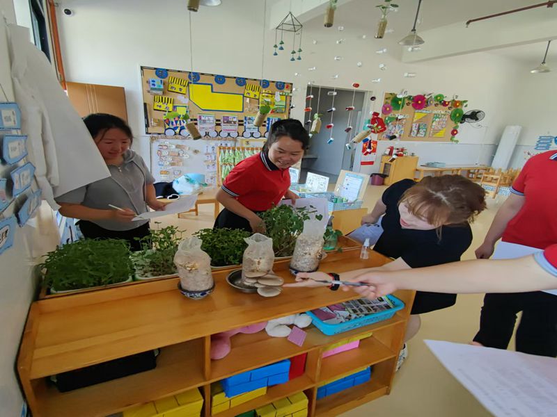 本网讯 5月21日,冷市镇大桥·中远海运幼儿园组织开展了“环绕童趣,境展童心”的班级环境创设评比活动。 午休时间,老师们来到一楼大班组教室。大班的环创主题是以本土资源和幼小衔接为主。大一班的老师抓住科学衔接这一契机,从身心准备、生活准备、学习准备、社会准备四方面来创设班级环境。大二班的老师将大桥本土文化特色“茶”搬进教室,教小朋友制茶、品尝、认茶。中小班的环创主题是根据幼儿兴趣为依托及其年龄特点,创设属于自己班上独有的特色区域。主班教师在各个教室进行评比时,情不自禁的被班级老师的智慧所吸引,忍不住去看看新生长的蘑菇,动手试试如何编发,进入茶馆泡杯茶······ 该园负责人表示:此次环创评比,创意新颖,主题鲜明,一班一特色,师幼积极参与,效果良好。(通讯员 黄梅)