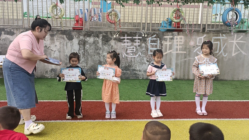 本网讯 近日,洞市幼儿园开展了“‘慧’自理,乐成长”为主题的中大班自理能力比赛。 比赛前,各班级分别进行了幼儿生活自理能力比赛初赛,班级幼儿人人参与,小朋友们积极参与,争取以最好的状态、最快的速度展现自己的本领。最后每个班级将推选出5名幼儿代表参加决赛大比拼:中班组决赛项目有穿鞋子、穿衣服、叠衣服、剥鸡蛋;大班组的决赛项目有系鞋带、整理书包、夹豆豆、叠被子。 比赛中,随着主持人讲解完比赛规则之后,比赛正式拉开帷幕:瞧,在大班孩子们手臂和手掌灵活翻动间,衣服很快就叠好了,小朋友们紧绷的小脸也随着任务的完成舒展开来;叠好衣服的小朋友在同伴们此起彼伏的加油声中,全神贯注地继续投入到下一个比赛中,经过一番努力终于把被子叠得整整齐齐,整个过程紧张而又激烈。 比赛在颁奖中落下帷幕。