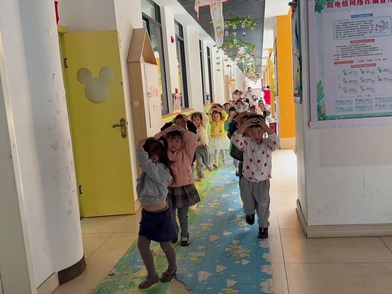 本网讯 5月14日,烟溪镇英迪儿幼儿园举行防地震、防踩踏应急演练,进一步普及防震减灾知识,增强幼儿的安全意识和逃生自救技能,提高幼儿园应对突发灾害的能力。 演练前,该园开会部署演练工作,详细制定演练方案,明确工作职责。各班教师针对幼儿年龄特点,通过图片、视频等多种方式,为幼儿普及地震小常识,教会孩子们如何安全有效地疏散撤离。 9点30分,警报声响起,各班立即停止一切活动。孩子们在教师的有序引导下,双手护头,降低重心,迅速就近躲到三角区、桌下或支撑结构较多的区域进行紧急避险。当广播发布疏散信号后,全体教师迅速带领幼儿通过最便利的两条逃生通道,按照正确的疏散路线迅速逃生。疏散到指定区域后,各班班主任第一时间仔细清点人数并汇报。