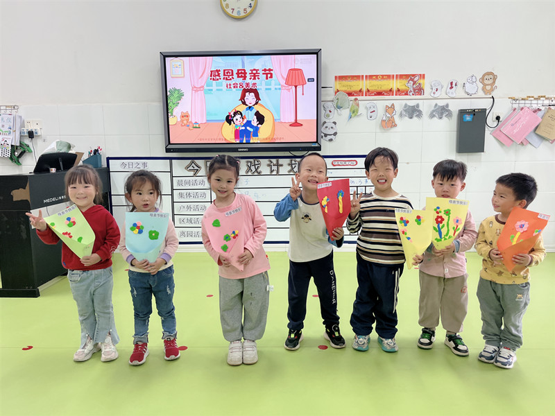 本网讯 5月11日,羊角塘镇中心幼儿园开展母亲节系列活动。 各班教师通过主题教育活动让孩子们说一说“妈妈的本领”,用语言表达妈妈的付出,体会妈妈的辛劳。小班组制作精美的花束献给自己的妈妈,表达对妈妈的祝福;中班组孩子们用手中七彩的画笔画下自己心中的妈妈,每一幅画都表达了孩子们对妈妈浓浓的爱意和感激;大班组开展《我当“孕”妈妈》活动,瞧,孩子们肚子里顶着一个圆球,化身“孕妈妈”,体验妈妈十月怀胎的辛苦。 “原来妈妈怀宝宝的时候这么辛苦,不能跑,不能跳,要时刻注意保护好肚子,弯腰不方便,蹲下不方便,下楼梯不方便……妈妈怀我的时候真不容易。”大一班贺子诺小朋友说。