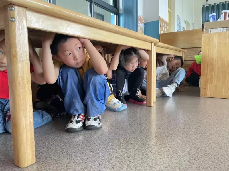 演练前,老师们对孩子们进行了详细的地震安全知识教育,确保每位幼儿都了解避险的正确方法。