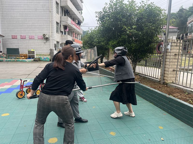 本网讯 5月9日,柘溪镇中心幼儿园开展防恐防暴演练活动。 演练活动前,安全领导小组召开专题工作会议,制定了详细的反恐防暴演练方案,部署相关事项,做到分工明确,责任到人。 演练开始了,班级老师听到警报声,迅速组织幼儿有序安全撤离关闭教室门窗,并用重物堵住教室门,手持防护物品,以防“歹徒”破门而入,随时准备搏斗;幼儿躲藏在教室隐蔽处,并保持安静。 反恐防暴演练结束后,各班级教师根据反恐防暴演练情况,及时进行活动总结,并安抚幼儿情绪,对幼儿进行心理疏导,让幼儿明白此次演练的目的和意义,帮助幼儿进一步增强自我保护意识。