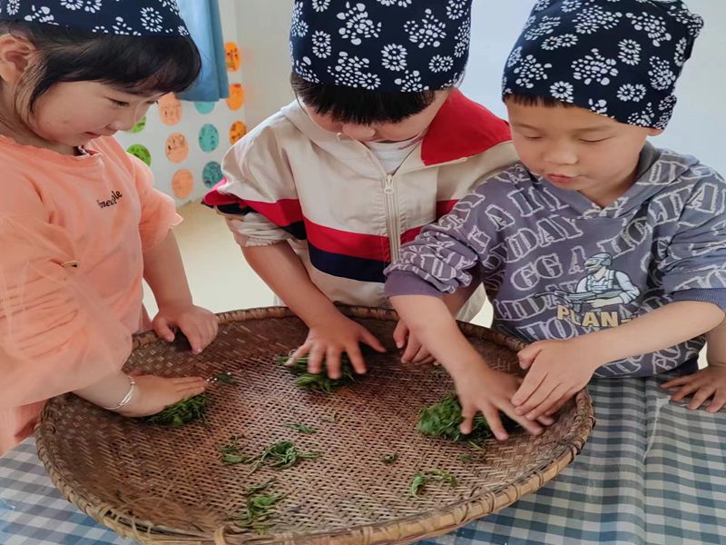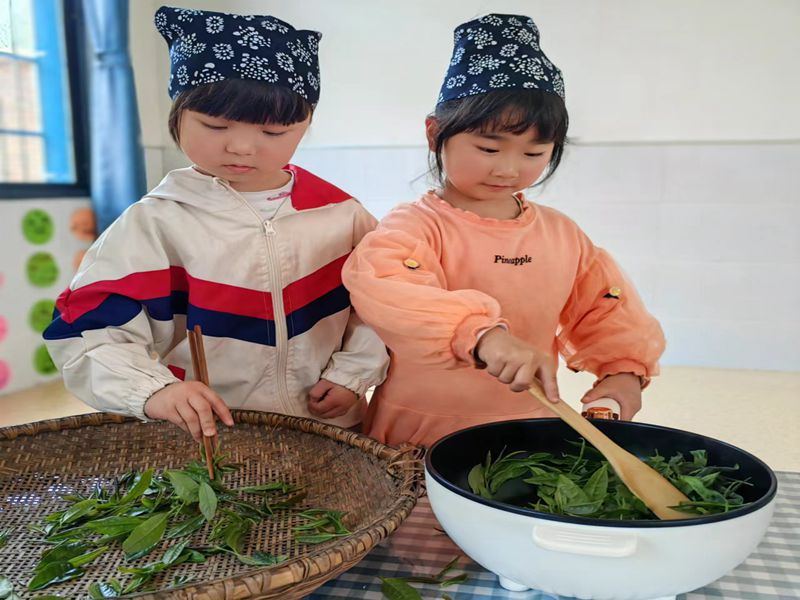 本网讯 4月28日,冷市镇大桥·中远海运幼儿园组织大二班的小朋友,开展了“遇茶香 品茶韵——制茶之旅”主题活动。 上午9点30分,孩子们在老师的带领下,背着竹篓,唱着《山里娃爱黑茶》,来到预定的茶园。大家来不及歇息,立马开始制作绿茶的第一道工序——采青。孩子们模仿老师采摘茶叶顶端的嫩叶,俨然山里采茶人。茶叶摘好后进行制茶的第二道工序——杀青,炒制嫩叶,当孩子闻到茶叶散发出来的香味时,不禁津津乐道。茶叶炒好后,马不停蹄制作绿茶的第三道工序——揉捻,他们将炒好的茶叶揉成细条,最后再拿出来晒青。每一道工序孩子们都学得认真,操作仔细,生怕有什么闪失。当孩子们拿着晒过的茶叶,一阵清香扑鼻而来,泡上一杯品尝起来,醇香的口感,让人久久难以释怀。 该园负责人告诉孩子们,生活就在身边,劳动创造幸福。走出课堂天地宽,参加社会实践活动,既体验了家乡的茶文化又培养了自己动手能力。(通讯员 黄梅)