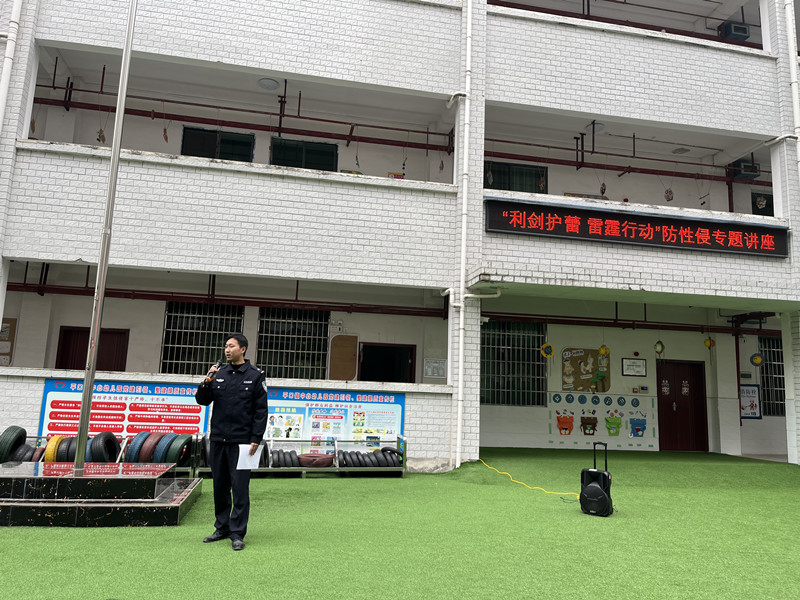 本网讯 4月28日,平口镇中心幼儿园特邀平口镇派出所联合开展了“利剑护蕾 雷霆行动”防性侵、防欺凌安全教育专题讲座。