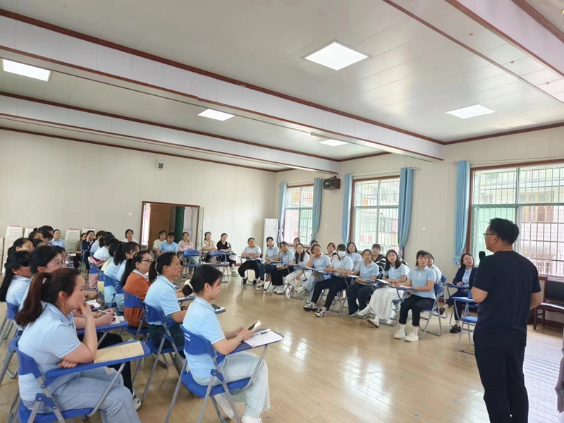 本网讯 4月26日,梅城镇幼教集团中心园特邀湖南省教育学会儿童核心素养专委会理事长、湖南省学前教育学会民办教育专委会主任、共情陪伴项目组指导专家李斌和项目组娟子老师进园进行现场指导。参加活动的有梅城镇幼教集团总园长晏丽妆,集团园四位园长,及各园保教干部、教师40余人。 活动分班级观摩与集中研讨两个环节进行。观摩前,李斌做出观摩指引:观察什么,怎么观察,并把自己在工作中的困惑、问题以及思考记下来作为现场的研讨内容。接下来参与人员进入小三班观摩了李易蔓老师组织的活动《交通规则要遵守》。每个老师都认真聆听、用心观察,将活动中的问题、感受记录下来。研讨以“研师幼互动,促幼儿个性与社会性发展”为主题。老师们讲述了在班级观摩中引发的问题,由李斌带领大家进行深入交流、探讨,大家积极发言,现场气氛活跃、热烈。李斌在活动中指出:幼儿园阶段幼儿最需要发展的是健全的人格。人格在关系中发展,人格在关系中呈现,人格在关系中疗愈。并重点讲述了亲子关系和师幼关系怎么影响孩子健全人格的养成。指出成人视角下的教育关注的是成长中的人,儿童立场的教育更关注的是孩子当下的自己,看到并允许幼儿的内心需要。每个教师的活法都决定他的儿童观,幼儿教育是一个触摸灵魂的事业,教师有责任帮助孩子形成一个健全人格。 “观察孩子、了解孩子、成为孩子,允许孩子做自己。”“做好自己,接纳现在的自己,不在乎别人的看法”……老师们在研讨结束后纷纷发表自己的感受。