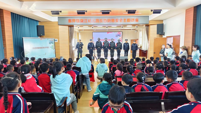 本网讯 3月29日,东坪镇萸江幼儿园携手东坪镇派出所、公安局巡特警大队多方联合开展了反恐防暴专题演练活动。 活动伊始,黄合社区民警周奕警官给全体教职工进行了一场精彩的反恐防暴专题讲座。周警官通过生动的案例和浅显易懂的语言,向师生们详细讲解了反恐防暴的重要性以及应对方法。演练活动正式开始,幼儿园与公安局巡特警大队分别从歹徒强行入园、持刀歹徒闯入操场师幼迅速撤离到安全地带、歹徒闯入教学楼师幼进行自救三个场景进行演练。 整个演练过程紧张有序,师幼们积极参与,配合默契,为幼儿园的安全工作提供了有力保障。