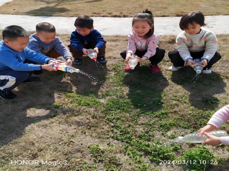 活动前,老师通过各种形式向孩子们介绍“植树节”的来历,植树的意义以及爱护小树苗的常识,并让小朋友们一起动手制作保护树木公示牌。在老师的带领下,小朋友们纷纷拿起自制的小水壶,轻轻蹲在小树苗身旁,喂小树苗喝水;捡走垃圾,为小树苗创造一个干净的环境。