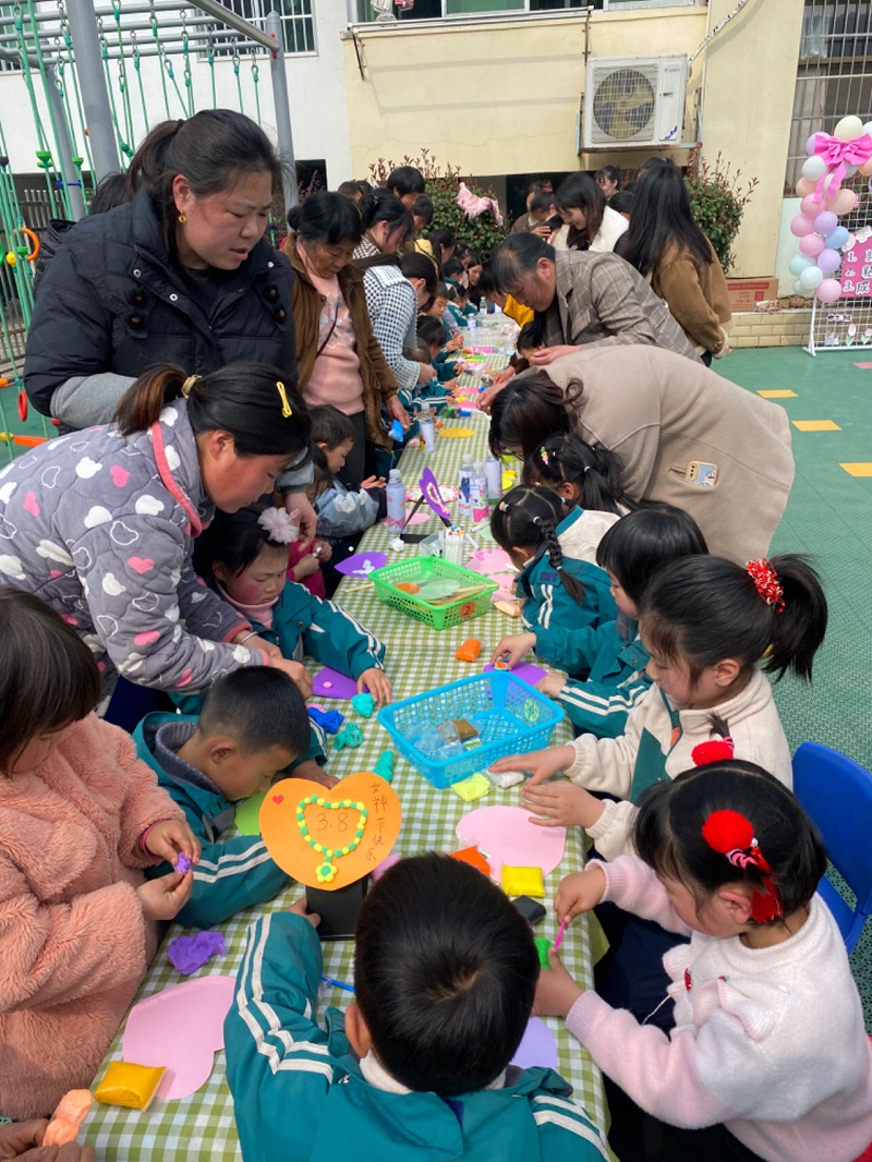 本网讯 3月8日,乐安镇中心幼儿园“笑在春风里,爱在三八节”特别庆祝活动大幕开启。幼儿园邀请了所有的“妈妈”在这不一样的春风里度过一个不一样的三八节。 气球、鲜花、蛋糕、礼品……还有那特色各异的签名墙,将整个幼儿园的操场布置得特别的温馨与浪漫。充满童趣与稚气的欢迎仪式,让所有参加活动的妈妈们露出眼里噙满感动泪水的笑脸。爱飞扬在整个操场的上空:老师或者妈妈给孩子们带来一个个“爱”的故事,带来三八节的由来,激发孩子心灵深处的爱与感恩!特别的礼物在特别的时刻献给特别的她,孩子们将自己动手制作美丽的花束、“皇冠”“包包”“戒指”等献给妈妈并给“女神”送上他们最纯真的祝福。妈妈们情不自禁的抱起自己孩子、身边的孩子随着音乐的响起自由的律动起来,让操场顿时变成欢乐的海洋。亲子游戏有序展开,将爱再一个升华。 爱,就要大声地说出来,在主持人的引导下,“妈妈,我爱你”“奶奶,我爱你”“外婆,我爱你”此起彼伏,爱,温暖每一个在场人,爱温暖着整个世界!