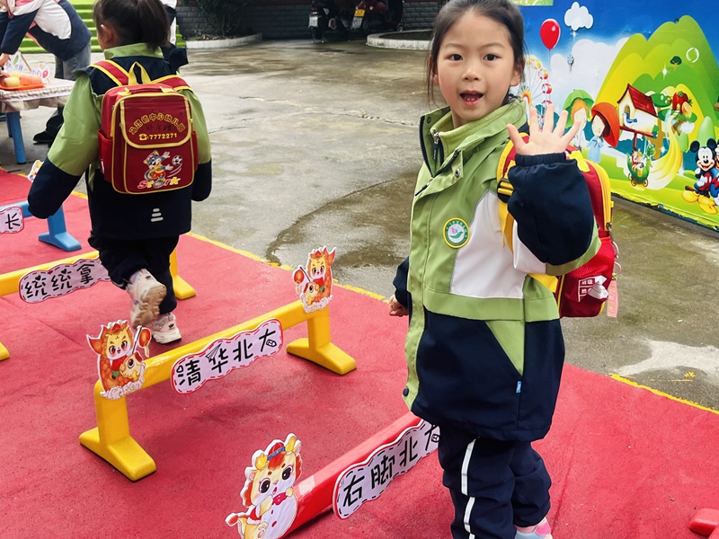 园内的幸福跨栏、气球拱门、迎新标语等,教师为孩子们营造满满的仪式感,