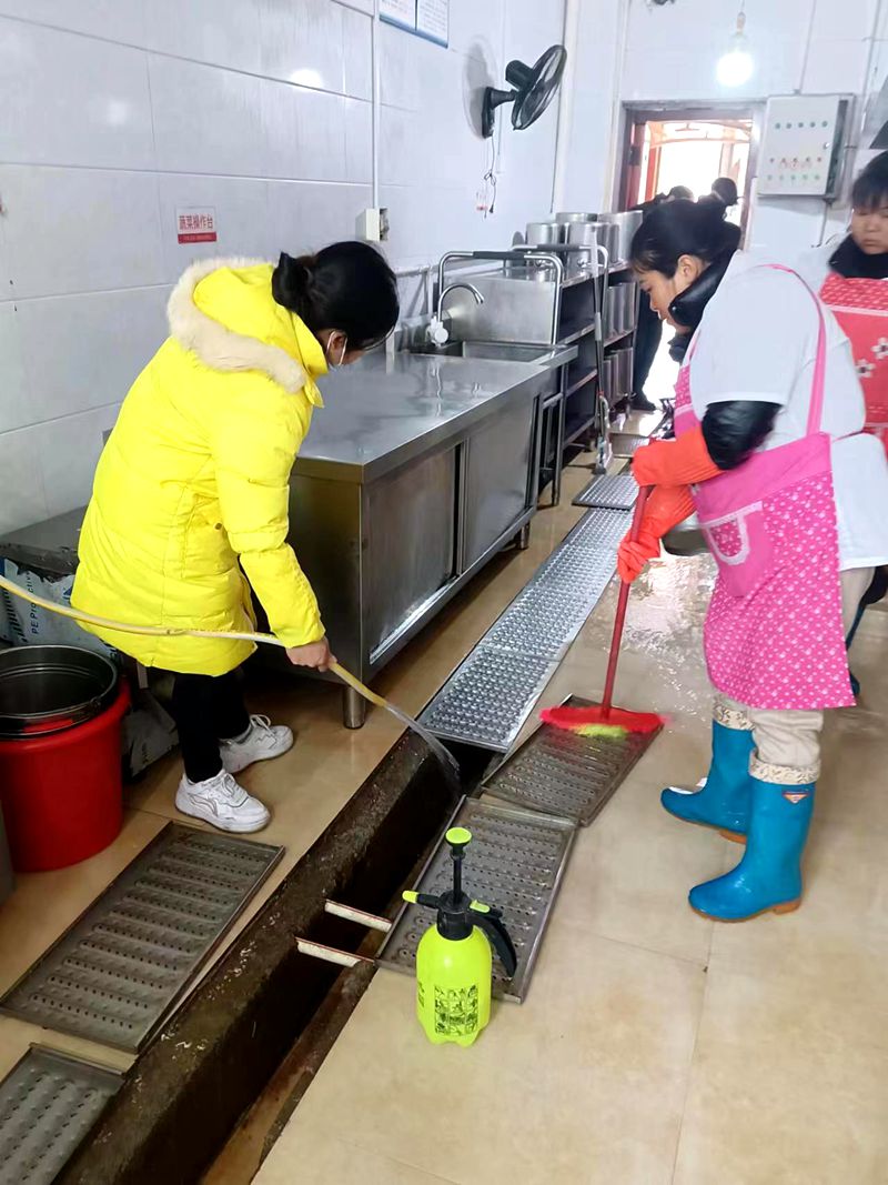 活动中,教师们对园所的盥洗室、桌椅、玩具、墙面、门窗、走廊、户外大型玩具、操场、体育器械等进行清扫、消毒。大家扫的扫、抹的抹、洗的洗,干劲十足,确保做到不留死角、不留盲区。厨房工作人员也认真擦洗了厨房用具、工作台、餐具、消毒柜等,并在清理后将餐具和用具进行了高温消毒。