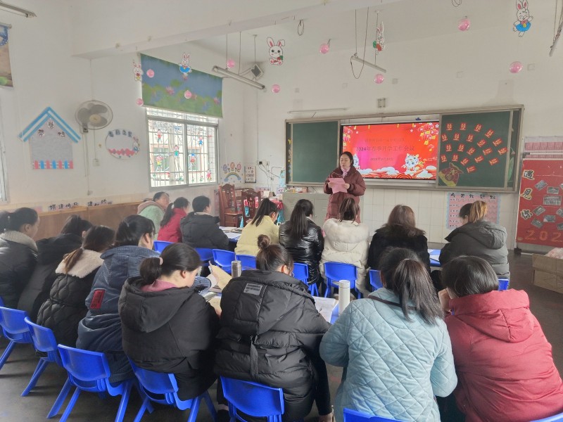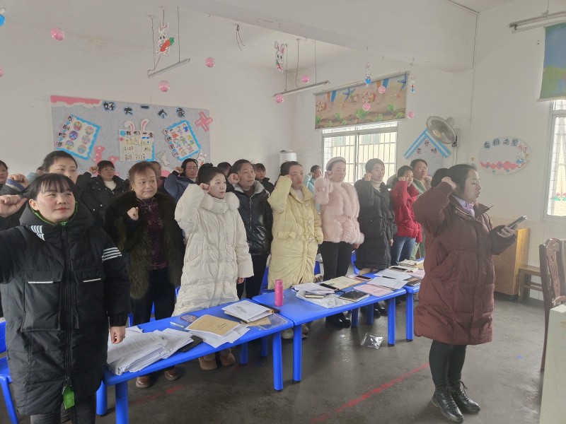 本网讯 2月27日,清塘铺镇第一完小幼儿园召开2024年春季开学工作部署会议。 会上,园长严艳红对2023年工作进行了回顾、全面梳理与总结,对目前现状及发展形势进行了具体分析,明确指出存在的问题,并对本学期工作作了详细的部署,部署了园所2024年的工作重心和奋斗目标。 副园长熊敏进行了师德师风重要讲话,回顾了上一年的师德师风成绩,强调了2024年师德师风工作内容,要求行政值日老师要重点关注老师们的到岗到位、日常工作、关爱幼儿等日常情况,希望老师们遵守工作纪律、履行工作职责,加强师德修养、守住师德底线,争做“四有”好老师。 副园长严雅妃对全园开学安全工作进行了具体的部署,并签订了安全责任状,为该园师生的生命安全保驾护航!