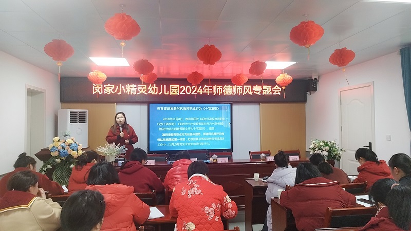 会上,园长戴欢妮回顾了上一年的师德师风成绩,强调了2024年师德师风工作内容,要求行政值日老师要重点关注老师们的到岗到位、日常工作、关爱幼儿等日常情况,严禁体罚、变相体罚幼儿;行政、党员教师要每周对重点教师进行一次谈心谈话,了解幼师心理动态,释放幼师超负荷工作压力;行政成员要每月开展一次以上教辅材料、家教家养、有偿服务的清查。