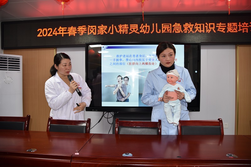 本网讯 2月27日,县消防大队民警邓文婕和县妇幼保健院主任谌秋平、李艳来给东坪镇小精灵幼儿园幼师进行消防安全和意外伤害处理的知识培训,全体教职工参加。
