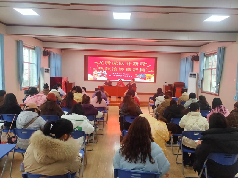 本网讯 2月25日下午,梅城镇中心幼儿园春季开学工作会议召开,全体教职工参加会议。 会前,园长付蓉带领保教处人员早早来到园门口迎接老师们“回家”:微笑、拥抱、礼花、祝福、新年礼物……重逢的日子,大家与感动“撞”个满怀,用满满的仪式感诠释别样开工礼。 在暖场游戏“摸爬滚打向前冲”“猜猜我是谁”“跃努力跃幸运”中拉开了会议帷幕。各部门负责人为大家梳理了新学期工作新目标,进行期初工作安排。付蓉从教育教学、安全保健、家园共育三个方面对2023年工作进行回顾梳理、找出问题、提炼收获,同时锚定新年工作方向:围绕一个中心、狠抓两个重点、树立三种意识。 付蓉表示,希望老师们坚守初心和真心,保持满腔热血和坚韧不拔的精神,坚持学习提升技能,做一个骄傲的自己,让生命有价值更精彩。
