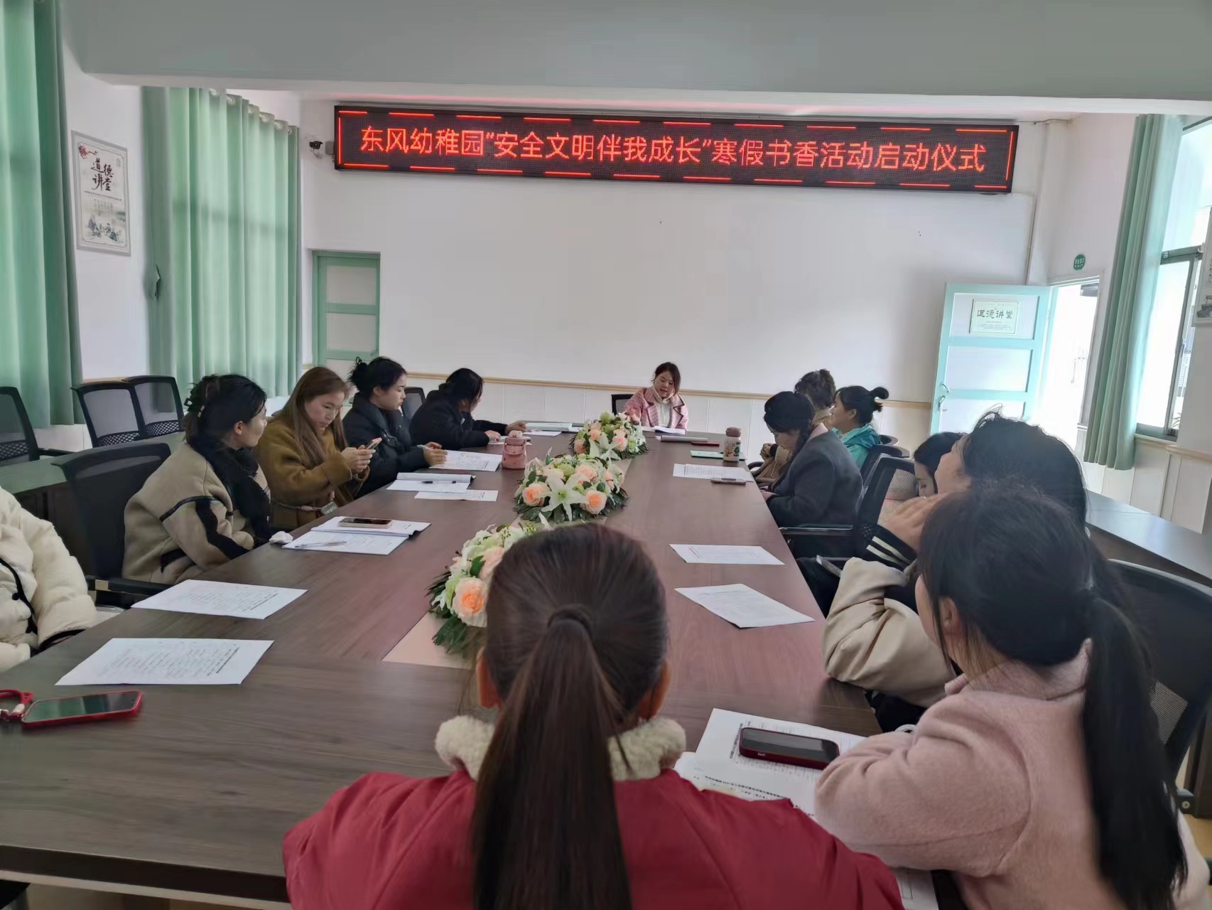 本网讯 1月17日上午,东坪镇东风幼稚园举行“安全文明伴我成长”寒假书香校园活动启动仪式。 仪式上,该园园长刘娴强调早期阅读的重要性,希望全体师幼、家长通过寒假阅读系列活动,激发阅读兴趣与热情,养成良好的阅读习惯,在知识的海洋中充实自己的精神世界。 书香校园负责专干王立霞带领学习了“安全文明伴我成长”活动方案,她希望全园全员共同积极参与,让书香溢满校园。仪式结束后,该园发出“放下手机爱上阅读”倡议,希望大家能放下手机,回归阅读! 让阅读成为一种生活方式,让追求知识成为一种社会潮流,让我们的家庭、幼儿园处处溢满书香。