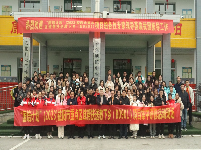 本网讯 1月5日,“国培计划”(2023)益阳市重点区域帮扶送教下乡(B0901)项目集中研修活动在羊角塘镇中心幼儿园举行,桃江县发展中心主任丁吉飞及各乡镇共100余名教师参加本次活动。 活动分为四个流程:参观园所环境、观摩自主游戏、案例研习、专家讲座,由羊角塘镇中心幼儿园副园长夏馨馨主持。 上午九点,老师们如约而至,夏馨馨向专家老师们详细介绍了该园办园理念及特色户外活动的创设,随后,老师们移步到教学楼二楼进行案例研习,桃江县幼儿园育英园保教主任刘诚带来的大班语言《跑跑镇》,课件制作精美,情节生动有趣,整节课既满足了幼儿的好奇心,又发挥了他们的想象力;桃江县幼儿园体能教师匡雄带来的《有趣的躲闪》,为孩子们创设了一个宽松自由的环境,孩子们与老师玩成一片,真正做到了玩中学,学中玩。 下午一点半,安化县萸江幼儿园园长颜群芳带来的专题讲座《农村幼儿开展自主游戏的探索路径》帮助参培教师理清了游戏前、游戏中、游戏后的自主游戏策略。学员们纷纷表示受益匪浅,并分享对此次培训活动的收获与思考。 该园负责人表示,互学互鉴,方能互生互长。本次国培活动,架起了幼教同行间相互交流的桥梁,形成相互学习、共同进步的良好平台。