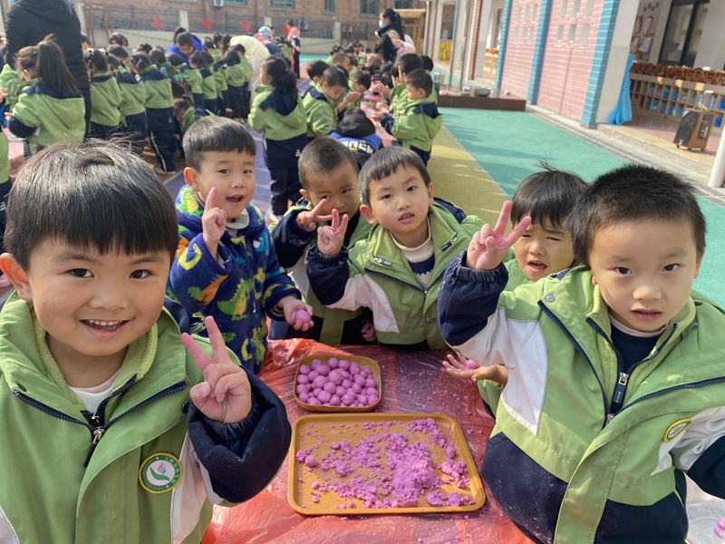 本网讯 12月22日上午,马路镇中心幼儿园开展冬至主题活动。 随着冬至的到来,日照时间渐长,它告诉人们:“冬至到,春将临。”为了让孩子们了解冬至的由来,弘扬中华民族传统文化、了解冬至的传统习俗,丰富孩子的生活经验,感受节日的欢乐气氛,特开展此活动。 通过PPT、绘本、故事、视频等多种形式,老师向孩子们讲述冬至的由来和习俗,让孩子们了解更多关于冬至的秘密。冬至这天是全年中白天最短、黑夜最长的一天,冬至过后,马上就要迎来新的一年。 小、大班教师组织幼儿尝试自己包水饺,体验动手的乐趣,感受节日的氛围。中班孩子们正在老师的带领下忙碌地搓汤圆呢,动作虽然生硬,但脸上却是满满的成就感。他们搓出大小、形状、颜色不一的汤圆,大的、小的、扁的、鼓的。孩子们在自己动手、共同分享中收获了成功与快乐。
