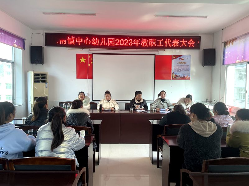 本网讯 12月12日中午,江南镇中心幼儿园召开了2023年教职工代表大会。大会由办公室主任谢庆主持,全体行政班子、11名教代会代表成员参会。 会议围绕党建工作、教师队伍建设、教学管理、安全卫生保健、后勤管理等方面,对 2023年度幼儿园全面工作进行了梳理和总结,充分肯定了全体教职工的辛勤与努力,并结合幼儿园整体发展目标提出了工作的主要思路和举措,鼓励全体教师不断钻研、求索、拾级而上,字字句句传递着实干、收获和力量。 代表们畅所欲言,认真履行代表职责,充分发挥了教代会代表的民主管理权和民主监督权,提出了不少富有建设性的建议。