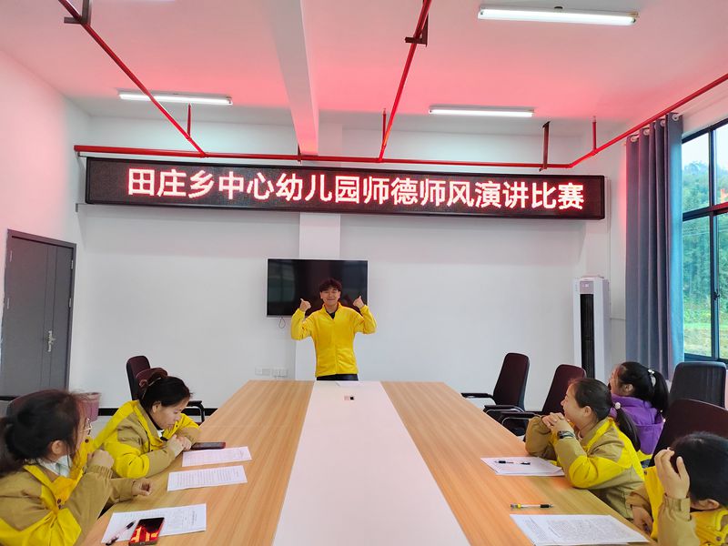本网讯 12月11日中午,田庄乡中心幼儿园常务副园长陶慧敏组织全体幼师开展以“我是一名幸福的幼儿教师”为话题的师德师风演讲比赛。 参赛教师根据抽签顺序依次上场,周艳梅老师的《静待花开,感受幸福》、陶孝老师的《做一名幸福的幼儿教师》、王宇婷老师的《用心工作,感悟幸福》……老师们用生动的事例、真挚的情感、朴实的言词,从不同角度阐述了自己对师德师风的理解,倾诉着她们对教育事业无限的热爱,表达了自己作为一名幼儿教师的幸福感和责任感。正如小班孝孝老师所说“初为人师时,不知道自己肩上的责任,以为自己就是一个‘孩子王’。后来,当渐渐融入教师这个角色,才感觉到自己更需要的是一颗真心与挚爱。在孩子们热切的目光中,我开始在各方面提高自身素质,并且把陶行知先生的名言:捧着一颗心来,不带半根草去当作自己的座右铭”;大二班梅梅老师所分享的“记得有一次我不舒服,午餐时不想吃饭,孩子们观察到了,然后萌萌小朋友就告诉其他小朋友,要他们别吵,梅梅老师不舒服,结果那天午睡,教室里出奇般的安静,孩子们一句句暖心的话会让我有满满的幸福感!”……整场演讲时而理性、时而感性、时而奔放、激动处声音高昂、声情并茂,精彩的演讲获得了台下老师的共鸣,赢得了此起彼伏的掌声。 演讲比赛在激烈的角逐中落下帷幕,陶慧敏在简要总结中说:“师德师风无处不在,演讲只是表达心迹的一种形式,希望老师们努力钻研、潜心育人,不断提升自我,为做好道德高尚、业务精良、具有生命活力的新时代幼儿教师而不懈努力。”