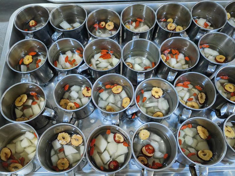 本网讯 12月11日,冷市镇大桥·中远海运幼儿园保育老师利用中午午休时间,为孩子们制作暖心又润肺的冰糖雪梨水。 最近天气变幻多端,流感盛行。班上总有几个咳嗽的小朋友。该园保育老师便自发决定为孩子们制作甜甜的冰糖雪梨水。只瞧见五个保育老师齐聚食堂,你削皮来我切块,你放枣来我放糖。忙得不亦乐乎,不一会儿,一百多杯冰糖雪梨等配料完成。老师们合力将半成品放至蒸箱蒸一个小时左右。等孩子们起床后,喝到暖暖的、甜甜的冰糖雪梨水,别提多开心了! 梁芷依小朋友说:“这个梨子水真的太好喝了,以后让奶奶也给我做,喝了就不咳嗽了。”(通讯员 黄梅)