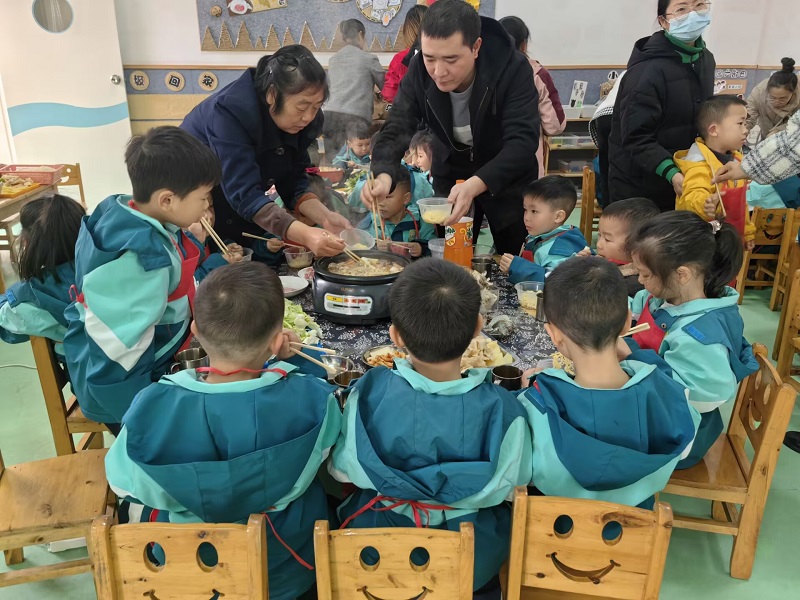 本网讯 12月8日,东坪镇闵家小精灵幼儿园中班组开展了冬日围炉,火锅盛宴等特色活动。 据悉,活动前,孩子们就此次活动进行了激烈的讨论和准备。为了让幼儿有参与感,有小主人的意识,同时增强生活体验感,老师根据食材清单制作了任务卡,让幼儿以盲抽的方式领取对应的任务,并按要求去准备好相应的食材。活动当天,孩子们自主分组,分工协作,有的小朋友负责切菜,有的小朋友负责洗菜,有的小朋友剥大蒜头、鹌鹑蛋,有的小朋友负责洗水果……大家忙得不亦乐乎,十分默契。火锅虽味美,但吃火锅时安全特别重要,吃火锅前教师也对幼儿进行了相关安全教育,并每桌委派了3-4名家长和1名行政负责看管用电安全及幼儿安全,为本次活动的顺利开展奠定坚实基础。 “我要吃虾,我要吃面。”在阵阵欢声笑语中,食材在浓汤中翻滚着,孩子们围坐在餐桌旁,狼吞虎咽地享受起了自己的劳动成果。教育即生活,生活即教育,本次活动中,闵幼孩子们从了解食材、罗列食材清单、准备食材、处理食材、享受食材,孩子们在认知体验、自主操作的过程中,提高自我服务的意识,发展自我成长的力量。(通讯员戴欢妮 林志群 酉海花)