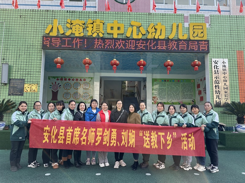本网讯 12月6日,安化县学前教育首届名师送教活动在小淹镇中心幼儿园开展。 县教育局青少年活动中心负责人蒋方芳、东坪镇东风幼稚园园长刘娴、东坪镇智多星幼儿园园长罗剑勇、安化县第一芙蓉学校德育副校长陈晨、小淹镇中心学校副校长罗功勋参加活动。 刘娴上了一堂生动的示范课《快乐的旅行团》,老师耐心地引导、鼓励幼儿主动思考、积极发言,整堂教学课都在看、听、说、做中完成,让老师们受益匪浅。陈晨以《做好幼小衔接,聚焦习惯养成》为主题,围绕幼儿做好入学准备的教育途径和方法展开讲座。最后罗剑勇就《自主游戏中教师如何进行有效观察》,通过理论知识的讲解、游戏案例分析、交流探讨等形式,为老师们带来了生动的经验分享。 该园负责人表示,此次送教活动,真正实现了资源共享、优势互补的教育理念,有力促进了安化县学前教育的高质量发展。