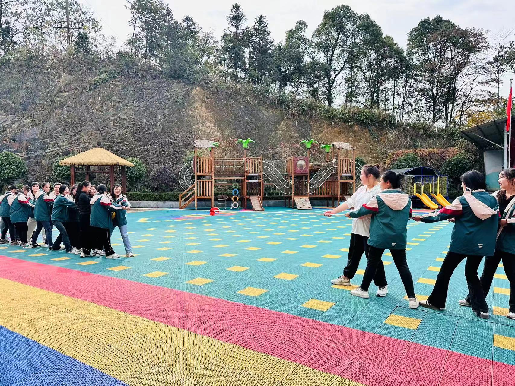 本网讯 11月22日,长塘镇中心幼儿园举行“凝心聚力一股绳 众志成城一条心”教职工拔河比赛活动。 本次比赛活动由该园办公室主任伍叶群主持,全体教职工共分为2组,比赛采用现场抽签的方式来进行,本着“友谊第一,比赛第二”的精神。“双方准备,预备开始”随着裁判一声哨响,拔河比赛正式开始,只见老师们眼神坚毅、咬紧牙关、紧握绳索、摆好阵势,齐心协力往后拔。比赛过程中,一根长长的绳索,连接着团结和友爱;一声声嘹亮的口号,传递着勇气和力量。 该园长表示,此次拔河比赛活动的开展,不仅让全体教职工放松了身心,而且增强了同事之间团结协作的凝聚力,更展现了长塘镇中心幼儿园锐意进取、团结和谐、蓬勃向上的精神风貌。